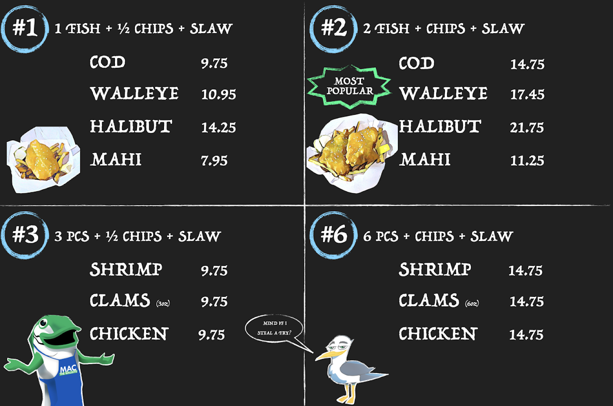 Introducing the menu at Mac's Fish / Chips / Strips in Minneapolis reveals a haven for seafood lovers. Nestled at 610 W 54th St, this eatery shines with its array of fresh, expertly cooked fish and chips.